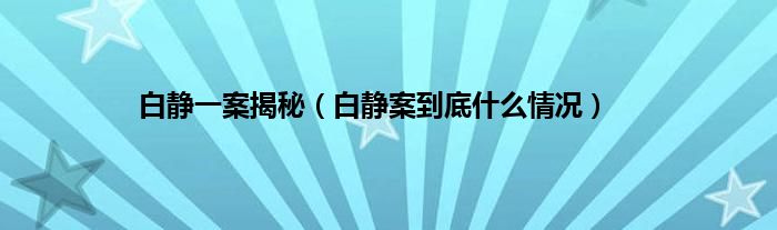 本文,白静一案揭秘,白静案到底什么情况到此就分享完毕,希望对大家有所帮助。