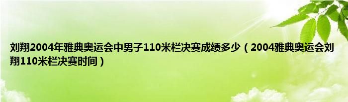 本文,刘翔2004年雅典奥运会中男子110米栏决赛成绩多少,2004雅典奥运会刘翔110米栏决赛时间到此就分享完毕,希望对大家有所帮助。