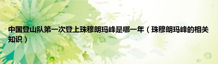 大家好,中国登山队第一次登上珠穆朗玛峰是哪一年,珠穆朗玛峰的相关知识很多人还不知道,现在让我们一起来看看吧!