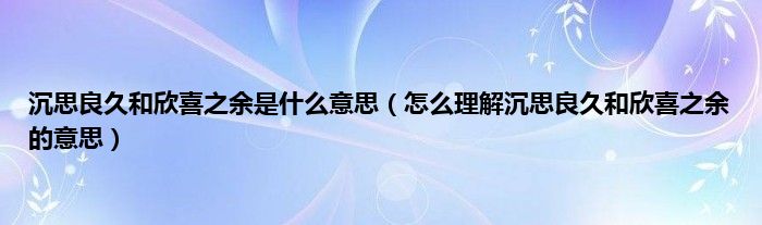 大家好,沉思良久和欣喜之余是什么意思,怎么理解沉思良久和欣喜之余的意思很多人还不知道,现在让我们一起来看看吧!