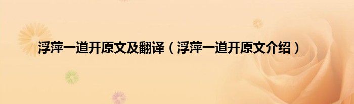 本文,浮萍一道开原文及翻译,浮萍一道开原文介绍到此就分享完毕,希望对大家有所帮助。
