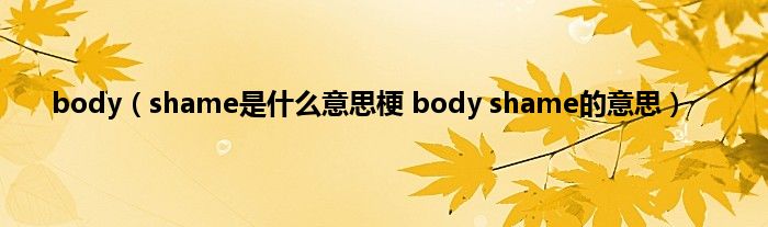 大家好,body,shame是什么意思梗 body shame的意思很多人还不知道,现在让我们一起来看看吧!