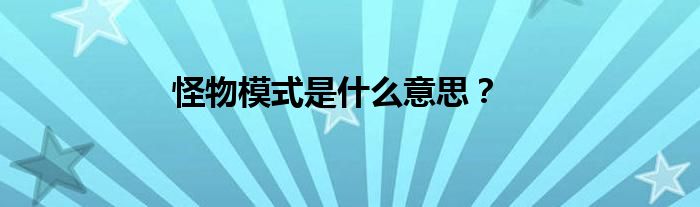 大家好,怪物模式是什么意思?很多人还不知道,现在让我们一起来看看吧!