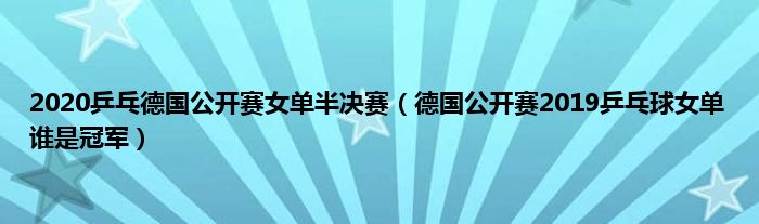 本文,2020乒乓德国公开赛女单半决赛,德国公开赛2019乒乓球女单谁是冠军到此就分享完毕,希望对大家有所帮助。