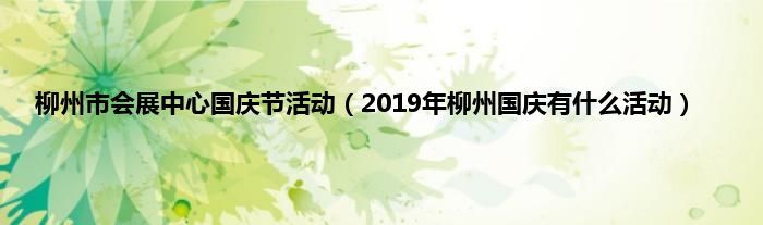 本文,柳州市会展中心国庆节活动,2019年柳州国庆有什么活动到此就分享完毕,希望对大家有所帮助。