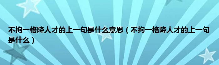 本文,不拘一格降人才的上一句是什么意思,不拘一格降人才的上一句是什么到此就分享完毕,希望对大家有所帮助。