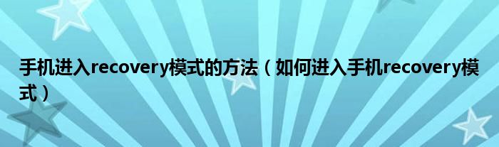 大家好,手机进入recovery模式的方法,如何进入手机recovery模式很多人还不知道,现在让我们一起来看看吧!