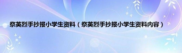 本文,祭英烈手抄报小学生资料,祭英烈手抄报小学生资料内容到此就分享完毕,希望对大家有所帮助。