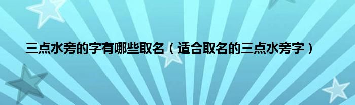 本文,三点水旁的字有哪些取名,适合取名的三点水旁字到此就分享完毕,希望对大家有所帮助。