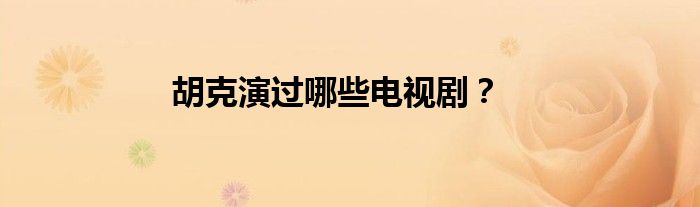 本文,胡克演过哪些电视剧?到此就分享完毕,希望对大家有所帮助。