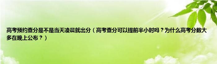 大家好,高考预约查分是不是当天凌晨就出分,高考查分可以提前半小时吗?为什么高考分数大多在晚上公布?很多人还不知道,现在让我们一起来看看吧!