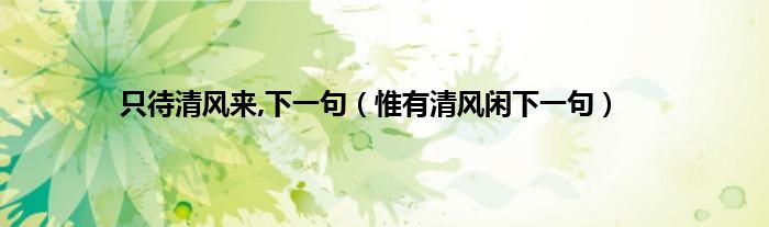 大家好,只待清风来,下一句,惟有清风闲下一句很多人还不知道,现在让我们一起来看看吧!