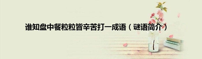 本文,谁知盘中餐粒粒皆辛苦打一成语,谜语简介到此就分享完毕,希望对大家有所帮助。