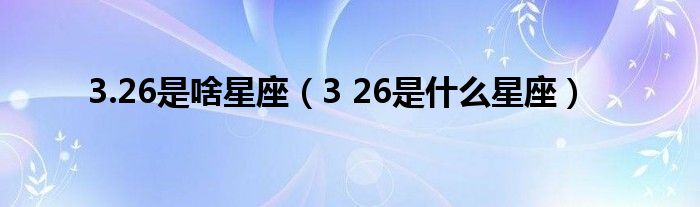 大家好,小问来为大家解答以上问题。3.26是啥星座,3 26是什么星座这个很多人还不知道,现在让我们一起来看看吧!