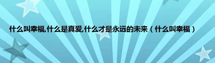 以上就是【什么叫幸福,什么是真爱,什么才是永远的未来,什么叫幸福】相关内容。