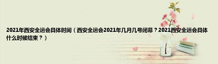 本文,2021年西安全运会具体时间,西安全运会2021年几月几号闭幕?2021西安全运会具体什么时候结束?到此就分享完毕,希望对大家有所帮助。
