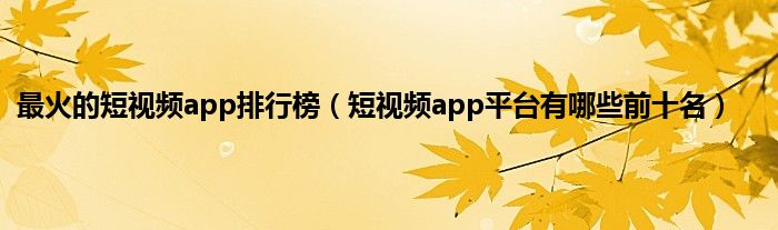 本文,最火的短视频app排行榜,短视频app平台有哪些前十名到此就分享完毕,希望对大家有所帮助。