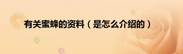 本文,有关蜜蜂的资料,是怎么介绍的到此就分享完毕,希望对大家有所帮助。
