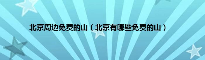 以上就是【北京周边免费的山,北京有哪些免费的山】相关内容。